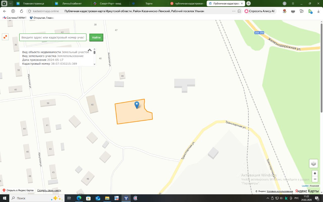 Земельный участок с кадастровым номером 38:07:030215:389, расположенный по адресу: Российская Федерация, Иркутская область, Казачинско-Ленский муниципальный район, Ульканское городское поселение, рабочий поселок Улькан, улица Ангарская, земельный участок 49, общей площадью 2000кв.м. с разрешенным использованием "для индивидуального жилищного строительства".