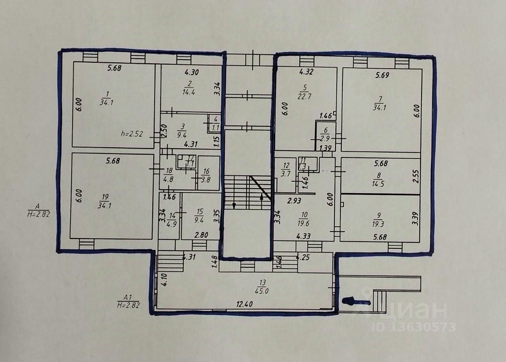 Просторный коридор, где комфортно можно разместить ресепшн, выставочный зал, входную группу