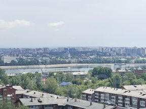 С высокого этажа открывается прекрасный вид на центральную часть города, р Ангару. Квартира укомплектована всей необходимой новой мебелью и бытовой техникой. (Установлен удобный большой 2х спальный диван.