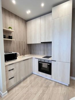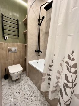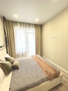 Новая уютная евродвушка класса люкс с дизайнерским интерьером и панорамным видом на город недалеко от аэропорта.