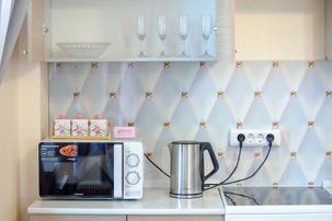Холодильник, плита, микроволновая печь, чайник, стиральная машина