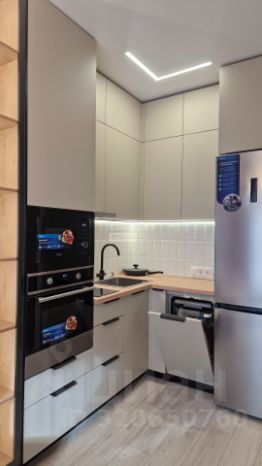 Мебель: кухонный гарнитур, микроволновка, холодильник, посудомоечная машина, телевизор, стиральная машина, встроенный гардероб, кондиционер.