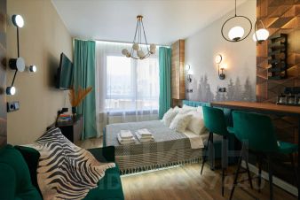 Атмосферу можно менять голосом: система "умный дом" с Алисой управляет светом, шторами, телевизором и кондиционером. Скажите пару слов — и студия подстроится под ваше настроение.
