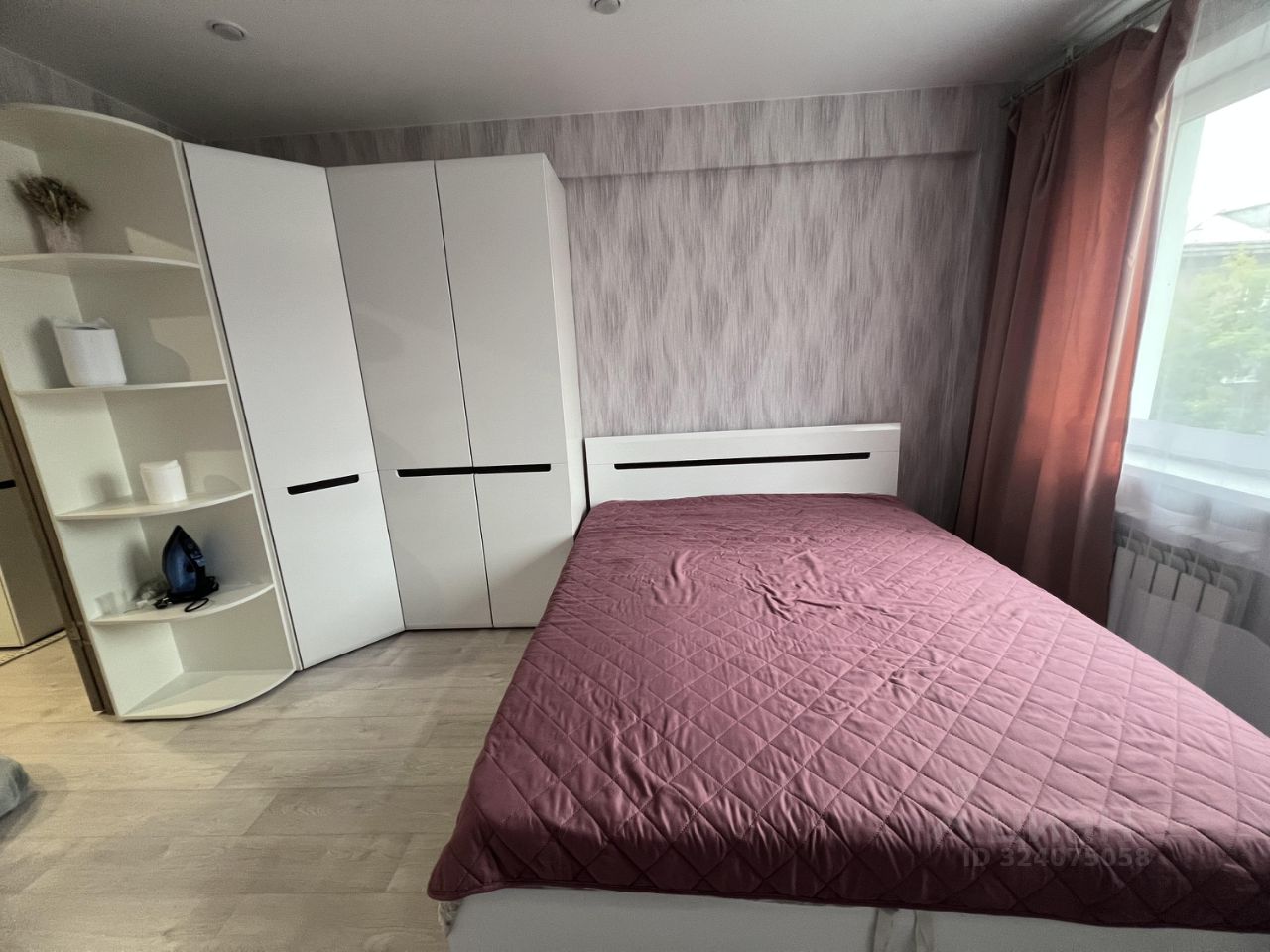 В спальне: большая двуспальной кроватью и ортопедическим матрасом и откидным верхом для хранения вещей, комод с зеркалом, прикроватная тумба угловой вместительный шкаф.