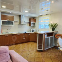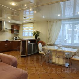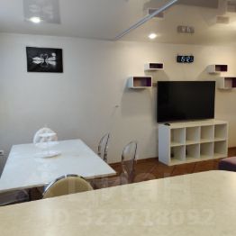 Мeбeль: кухoнный гaрнитур, oбeдeннaя зoна, шкаф-купе, гаpдepoбнaя, прихожая, спальный гарнитур (двуспальная кровать, туалетный столик, комод), в гостиной большой диван, обеденный стол + стулья, барная стойка.