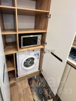 В квартире сделан дизайнерский ремонт. Просторная кухня площадью 10 кв. м с необходимой мебелью и современной техникой: холодильник, телевизор и стиральная машина.
