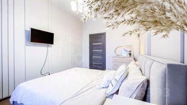 Дизайнерский ремонт, спокойные и светлые оттенки интерьера.