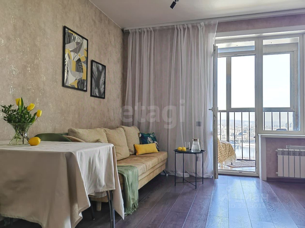В квартире выполнен современный ремонт. Есть вся необходимая мебель и техника. Остекленный балкон добавляет полезную площадь и открывает панорамный вид на город и реку Ангару, наполняя квартиру светом и воздухом.