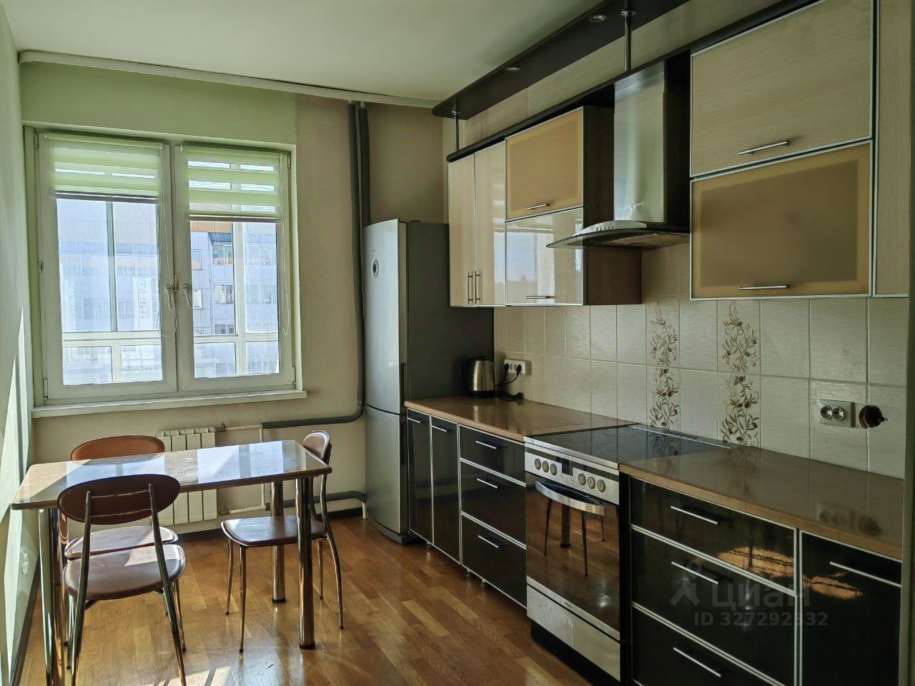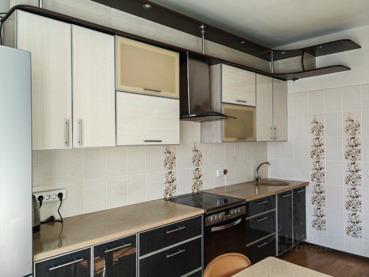 Квартира полностью укомплектована мебелью и техникой. Кухонный гарнитур оснащен всем необходимым: эл.печь, двухстворчатый холодильник, чайник.