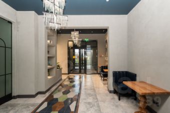 * в парадной расположена зона лобби (отдыха) и коворкинг, окна выходят на закрытую детскую площадку, места оснащены розетками;