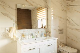 Санузел гостевой полноценный с ванной. (всего в доме 3 полноценных санузла). Есть техническое помещение с раковиной, стиральной машиной, местом для сушильной машины, гладильной доской, полок для хранения вещей и горизонтальная морозильная камера на 200л!.