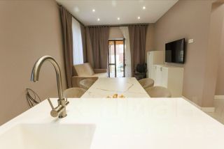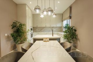 Кухня: качественная техника (духовка, СВЧ, посудомоечная машина, варочная панель, кофеварка), гранитный стол, остров с раковиной и фильтром для воды.