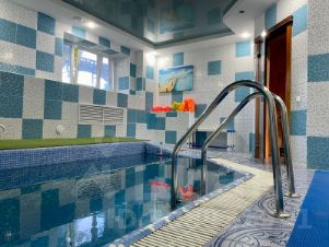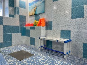 Удобное зонирование: ресепшен, раздевалка, душевые, с/у, тренажерный зал, бассейн с парной и сауна с купелью. Две чаши бассейна