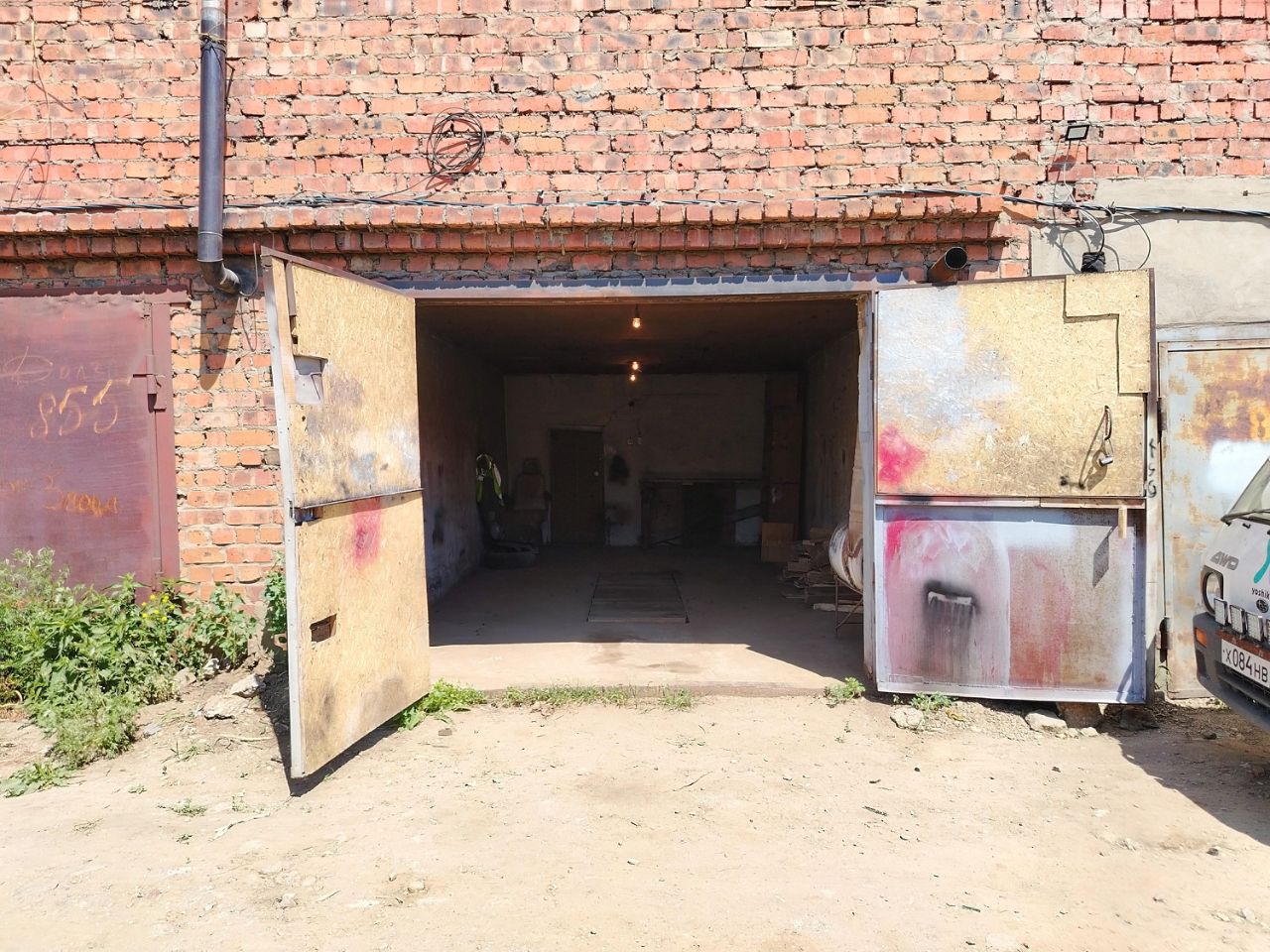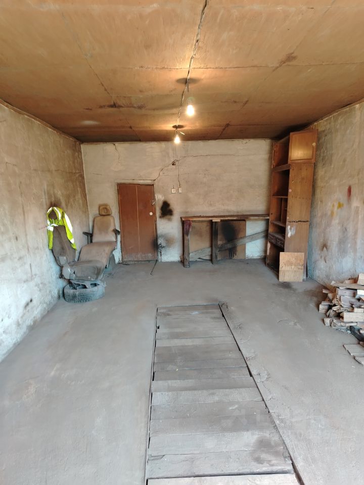 Имеется смотровая яма, ниша для хранения овощей на зиму, электричество, бетонный пол, печка. Утепленные ворота.