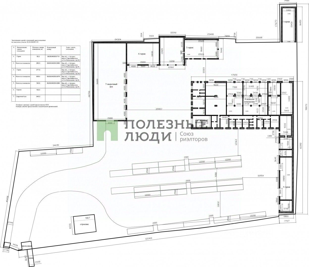 - Гаражи, общей площадью 519,8 кв. м.