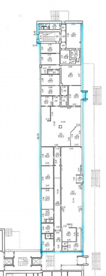 Помещения коридорно-кабинетной планировки, 4 этажа, высота потолков до 4,5 м. Помещения площадью до 140 кв. м. Есть действующие арендаторы.