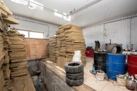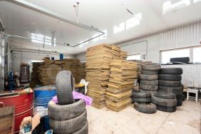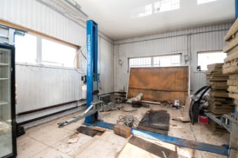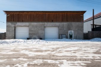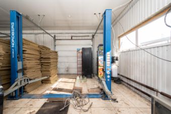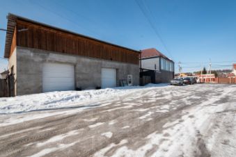 Отдельный теплый гараж-бокс площадью 100 кв.м. с высокими воротами.