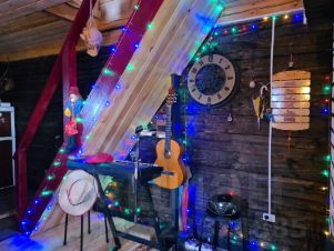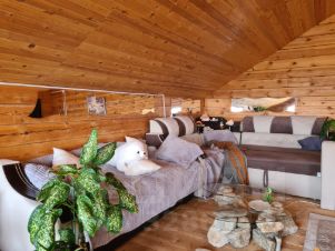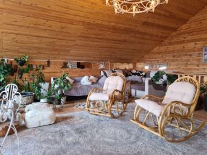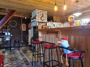Первый этаж:Кухнягостиная сердце дома. Здесь можно душевно петь песни у камина, играть на гитаре, делиться впечатлениями и наслаждаться домашней едой. Мягкие диваны, тёплый свет и атмосфера уюта располагают к д