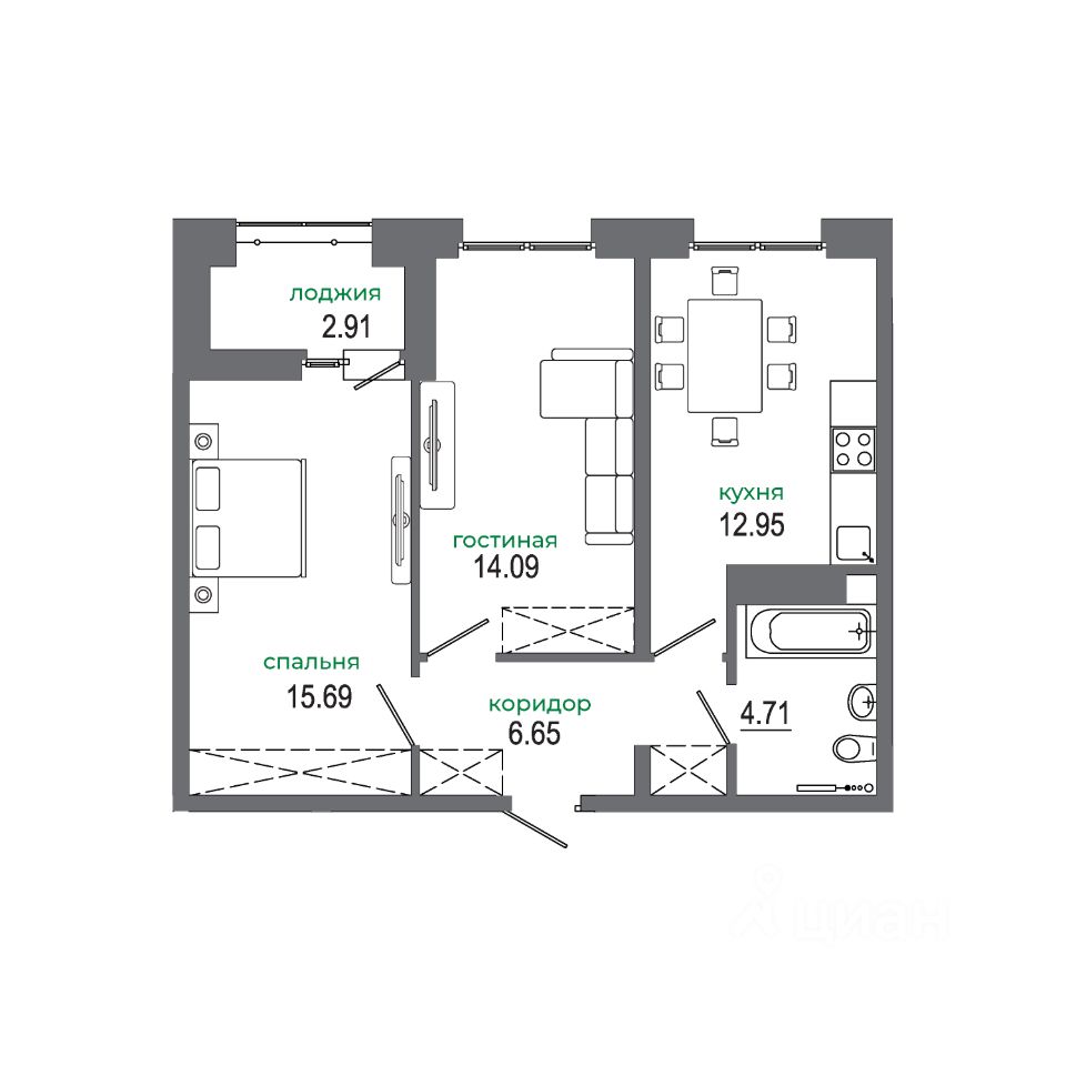 Общая площадь56,8 м²