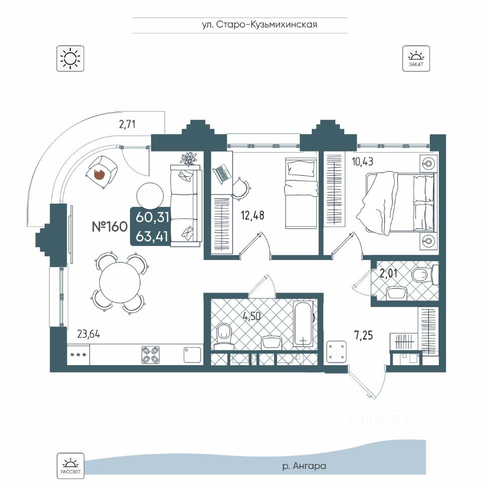 Разноформатность зон отдыха подходит для неспешных прогулок и дружеских разговоров в приватных зонах с видом на реку. Мы отделили детскую зону и вынесли за пределы двора шумные спортивные площадки, для того чтобы все способствовало максимально комфортному отдыху. Ощущение приватности и собственной исключительности на каждом шагу! Более 80% квартир дома БРОДСКИЙ могут похвастаться захватывающими видами на реку Ангару!