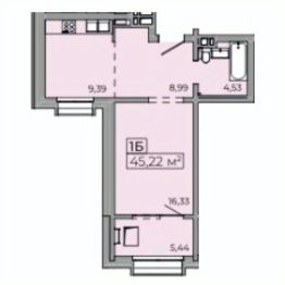 1-комн. квартира, 45,6 м²