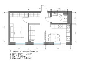 Кухня-гостиная: 16 кв.м