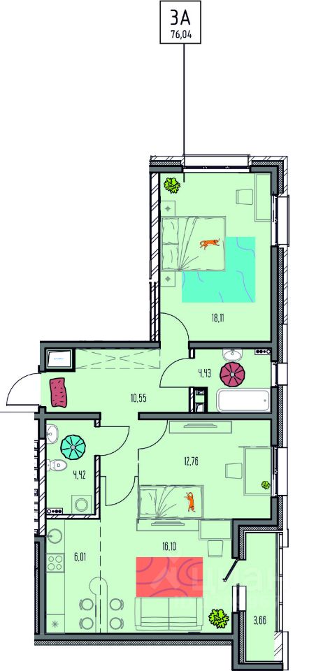 Общая площадь76,04 м²