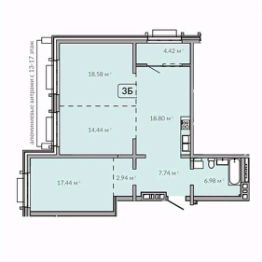 3-комн. квартира, 91,34 м²