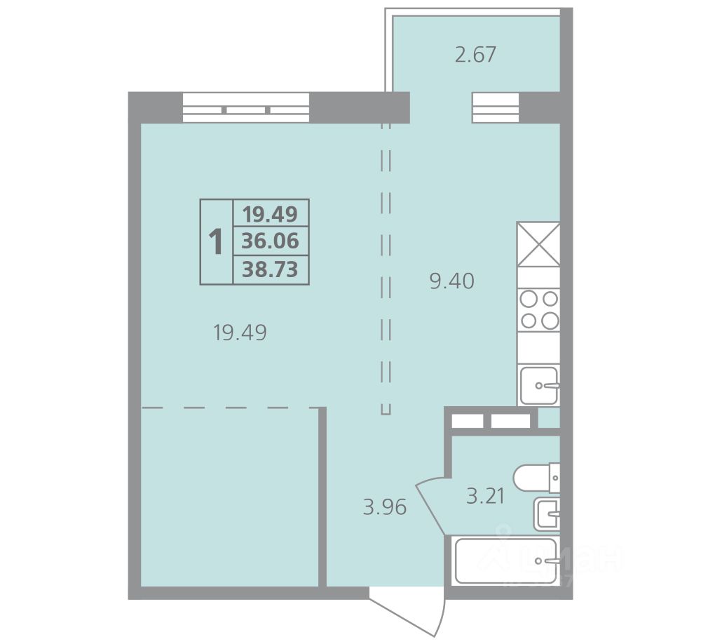 Общая площадь38,73 м²