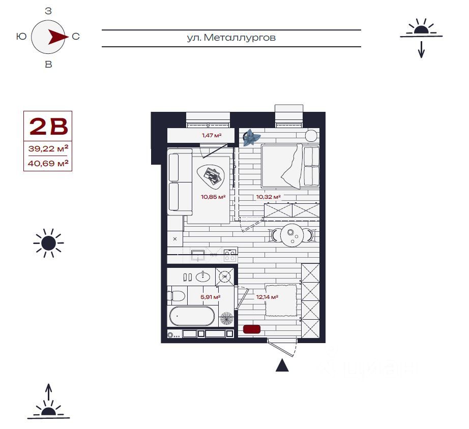 Продаётся 2-комнатная квартира в строящемся доме (Дом 1), срок сдачи: IV-кв. 2027, общей площадью 40.69 кв.м., на 9 этаже. Новый жилой комплекс "Первый приорити" от застройщика "Региональный специализированный застройщик" расположен по адресу: г. Братск, улица Металлургов