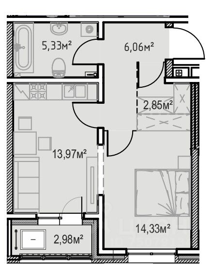 Жилая площадь14,3 м²