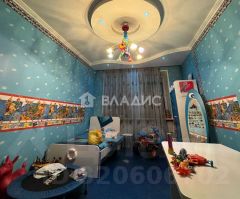 В квартире остается кухонный гарнитур, стол и стулья, холодильник, спальный гарнитур, встроенный шкаф, детская комната со всей мебелью и шведской стенкой.