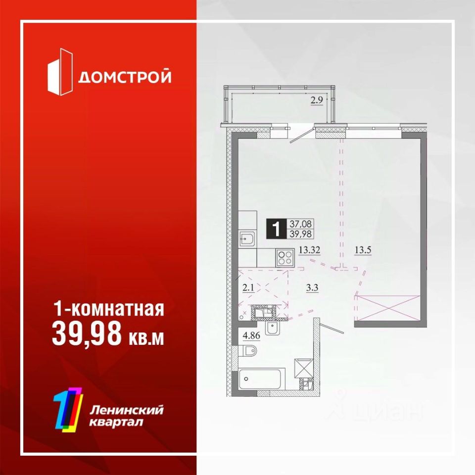 Продаётся 1-комнатная квартира в строящемся доме (Жилой дом 6 (Секция 11) ), срок сдачи: IV-кв. 2026, общей площадью 39.98 кв.м., на 3 этаже. Первый Ленинский квартал - новый перспективный квартал, масштабы которого поражают. В нем предусмотрено все: расположение, уютный благоустроенный и, что немаловажно, безопасный двор с видеонаблюдением, умные домофоны, энергоэффективное освещение. Будет установлена парковка для электромобилей с возможностью подзарядки, стойки для велосипедов. В квартирах умные счетчики, окна с витражным остеклением.