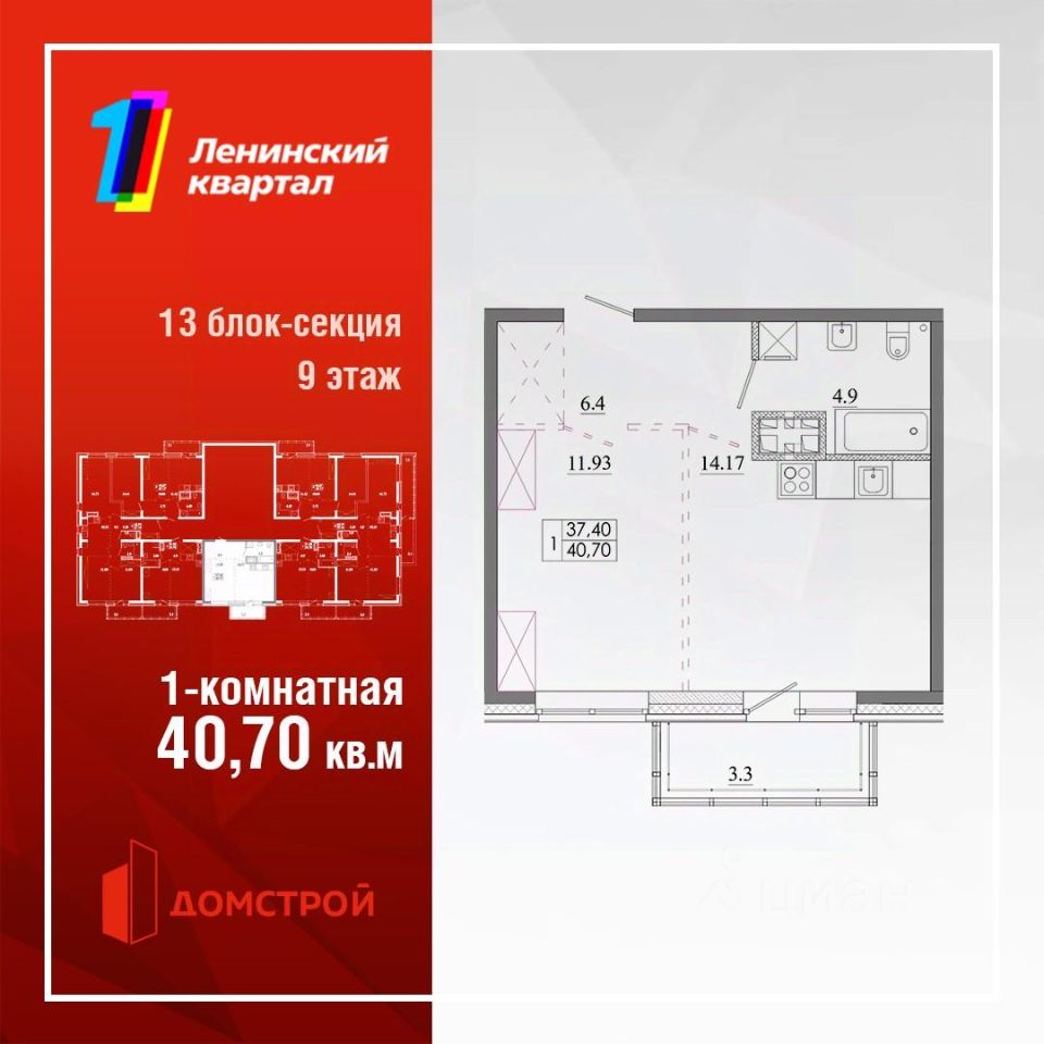 Продаётся 1-комнатная квартира в строящемся доме (Жилой дом 7 (блок-секция 13)), срок сдачи: IV-кв. 2026, общей площадью 40.7 кв.м., на 13 этаже. Первый Ленинский квартал - новый перспективный квартал, масштабы которого поражают. В нем предусмотрено все: расположение, уютный благоустроенный и, что немаловажно, безопасный двор с видеонаблюдением, умные домофоны, энергоэффективное освещение. Будет установлена парковка для электромобилей с возможностью подзарядки, стойки для велосипедов. В квартирах умные счетчики, окна с витражным остеклением.