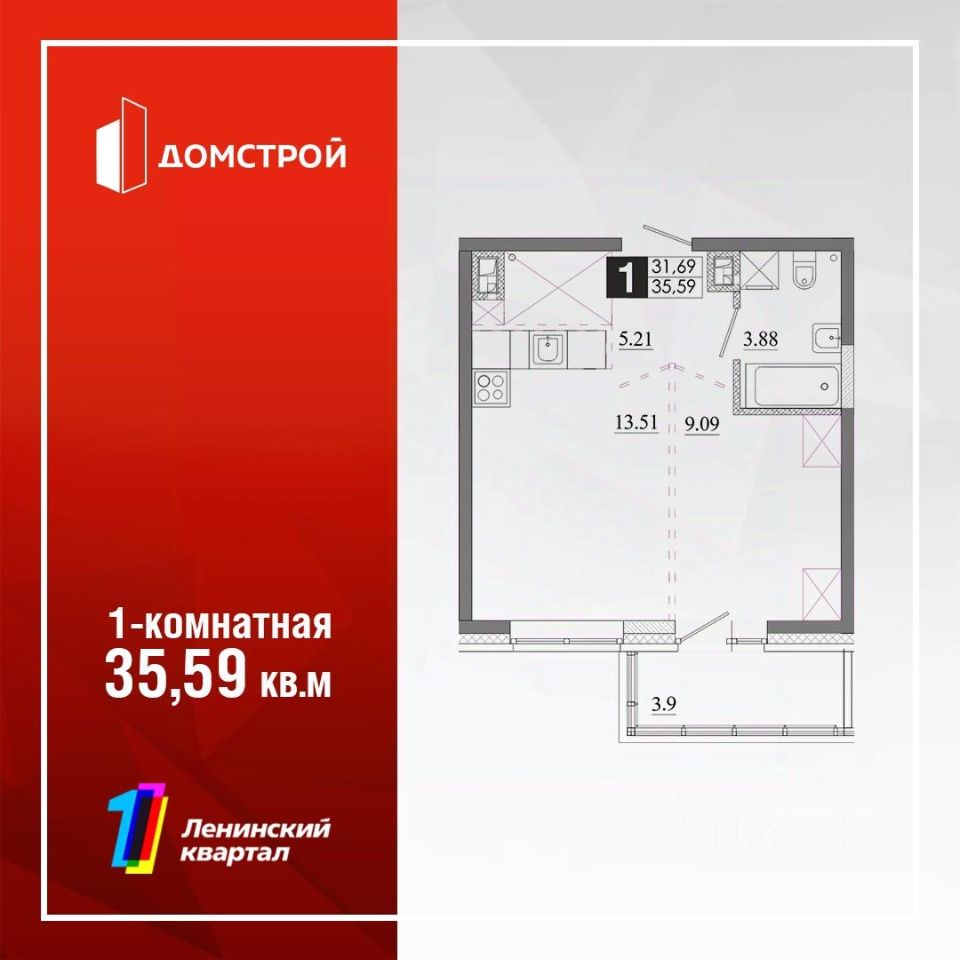 Продаётся 1-комнатная квартира в строящемся доме (Жилой дом 6 (Секция 12) ), срок сдачи: IV-кв. 2026, общей площадью 35.59 кв.м., на 2 этаже. Первый Ленинский квартал - новый перспективный квартал, масштабы которого поражают. В нем предусмотрено все: расположение, уютный благоустроенный и, что немаловажно, безопасный двор с видеонаблюдением, умные домофоны, энергоэффективное освещение. Будет установлена парковка для электромобилей с возможностью подзарядки, стойки для велосипедов. В квартирах умные счетчики, окна с витражным остеклением.