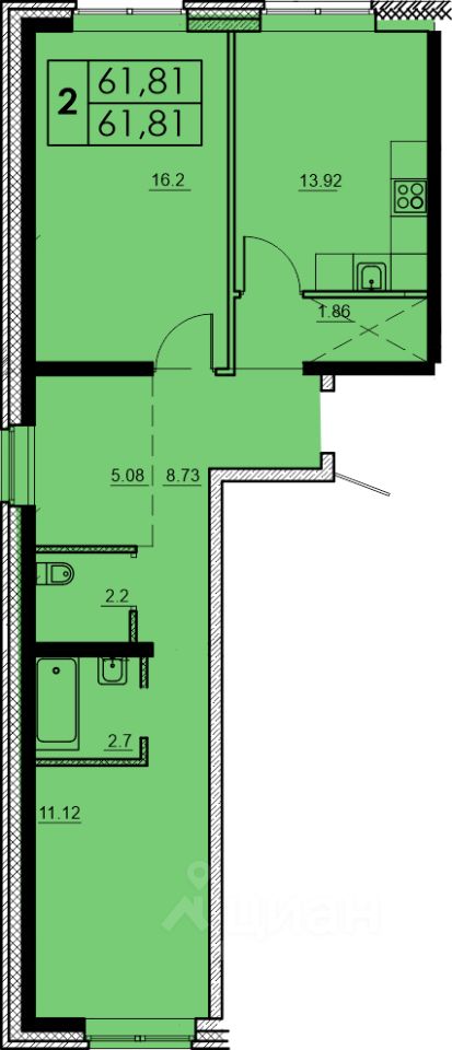 Продаётся 2-комнатная квартира в сданном доме (Баумана, 271 (Дом 3 БС 15)), срок сдачи: III-кв. 2025, общей площадью 61.81 кв.м., на 1 этаже. Новый жилой комплекс "Мега" от застройщика "ФСК Домстрой" расположен по адресу: Россия, Иркутск, переулок Археолога Михаила Герасимова.