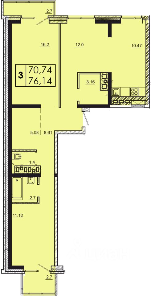 Продаётся 3-комнатная квартира в сданном доме (Баумана, 271 (Дом 4 БС 17)), срок сдачи: III-кв. 2025, общей площадью 76.14 кв.м., на 12 этаже. Новый жилой комплекс "Мега" от застройщика "ФСК Домстрой" расположен по адресу: Россия, Иркутск, переулок Археолога Михаила Герасимова.