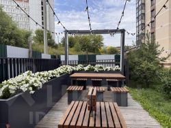 Внутри очень хорошая современная детская площадка, скалодром, зона отдыха (беседка) с перголой и вечерней подсветкой. Все под видеонаблюдением.
