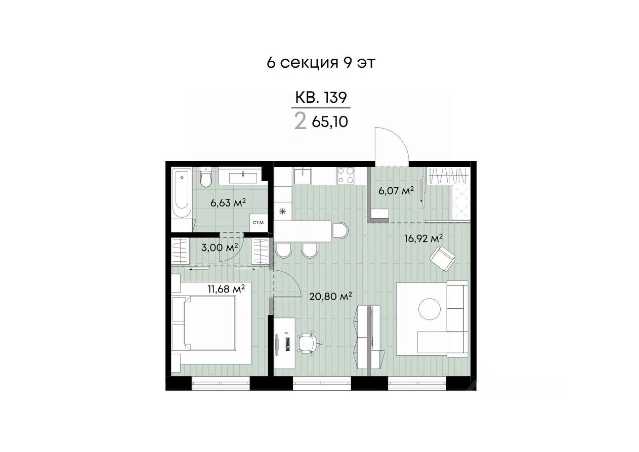 Общая площадь65,1 м²