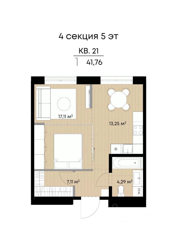Общая площадь41,76 м²