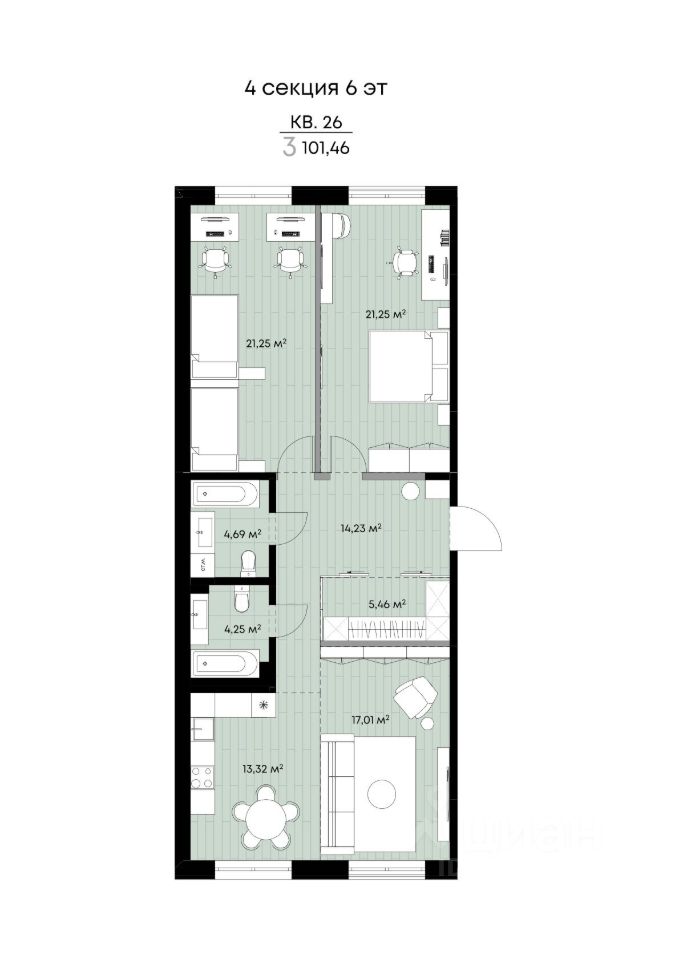 Общая площадь101,46 м²