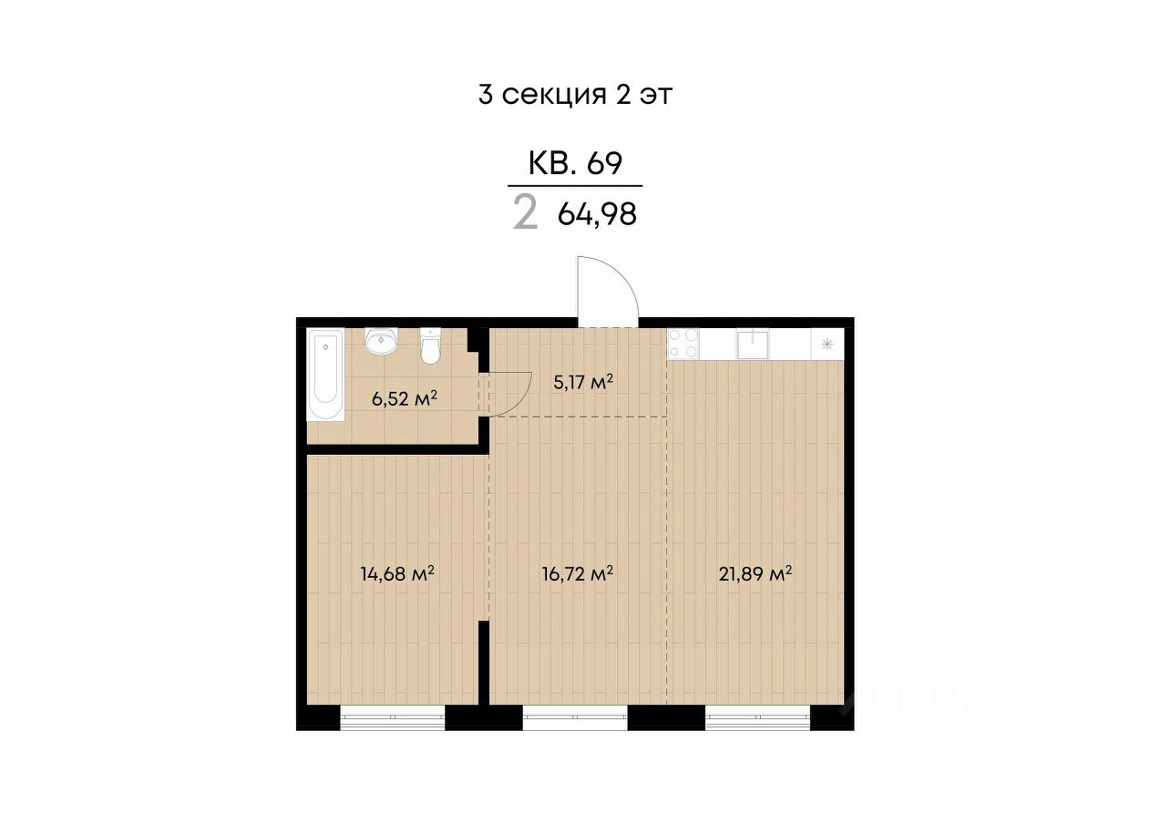 Общая площадь64,98 м²