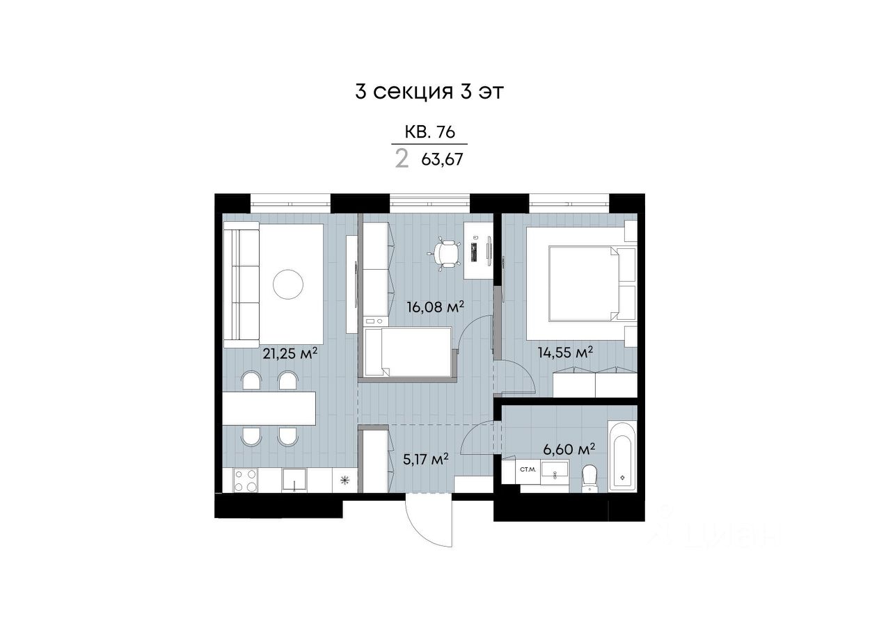 Общая площадь63,66 м²