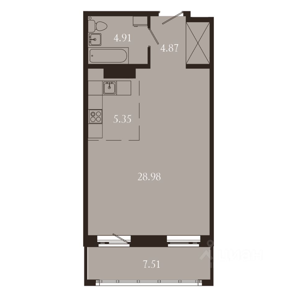Продается 1-комн. квартира, 51,62 м²
