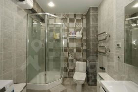 - По-настоящему просторная ванная с душевой кабиной и приятным бонусом тёплым полом, который особенно порадует в холодное время года.
