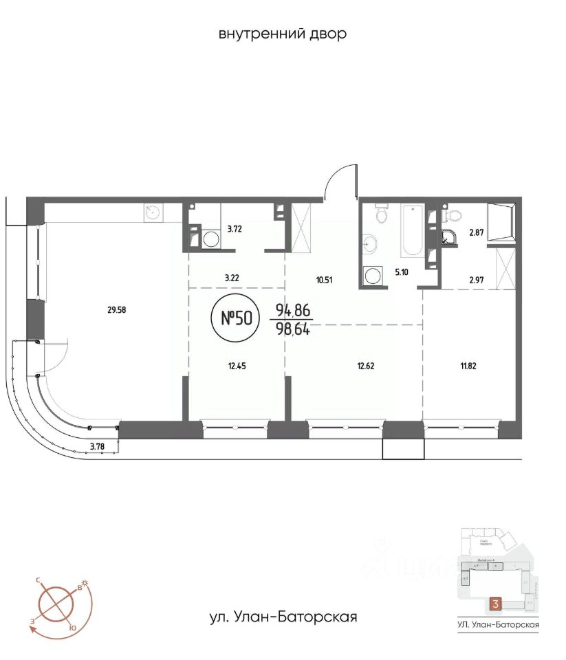 Продаётся 3-комнатная квартира в строящемся доме (Дом 3), срок сдачи: III-кв. 2029, общей площадью 98.64 кв.м., на 9 этаже. Мы начали с эталона - жилого комплекса Союз Priority, лучшего в России. А теперь представляем его логичное и яркое продолжение Союз Priority MAX.