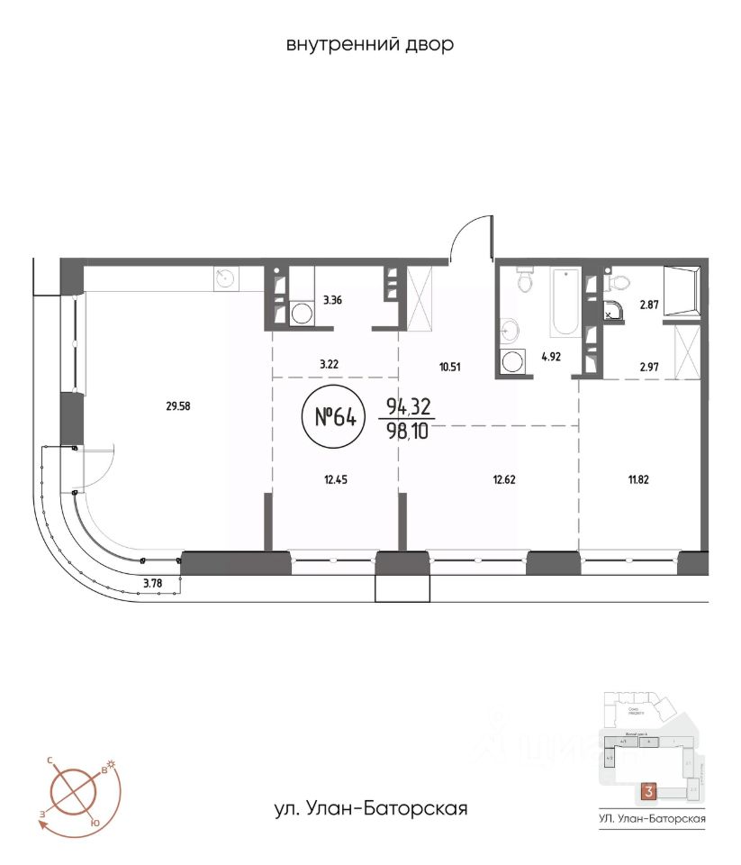 Продаётся 3-комнатная квартира в строящемся доме (Дом 3), срок сдачи: III-кв. 2029, общей площадью 98.1 кв.м., на 11 этаже. Мы начали с эталона - жилого комплекса Союз Priority, лучшего в России. А теперь представляем его логичное и яркое продолжение Союз Priority MAX.