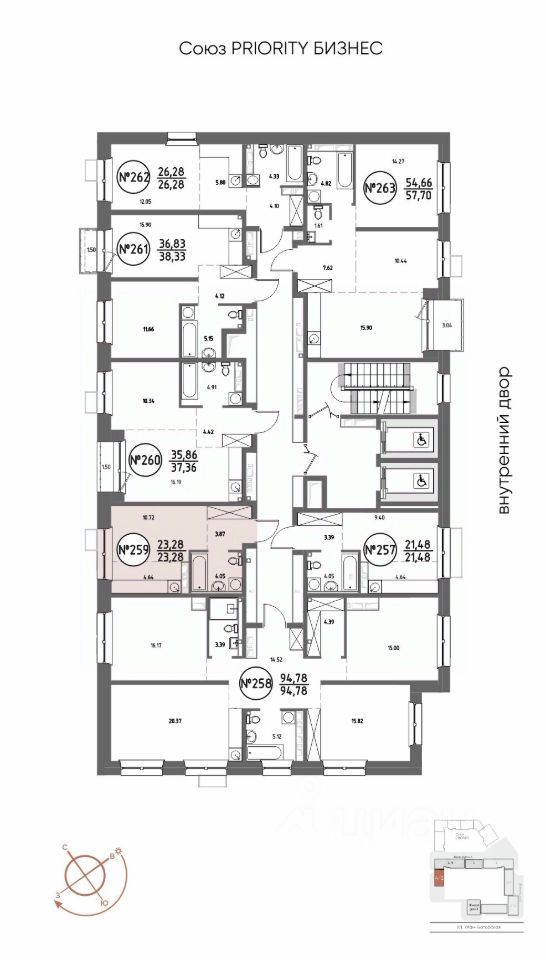 Продаётся 1-комнатная квартира в строящемся доме (Дом 4), срок сдачи: III-кв. 2029, общей площадью 23.28 кв.м., на 15 этаже. Мы начали с эталона - жилого комплекса Союз Priority, лучшего в России. А теперь представляем его логичное и яркое продолжение Союз Priority MAX.