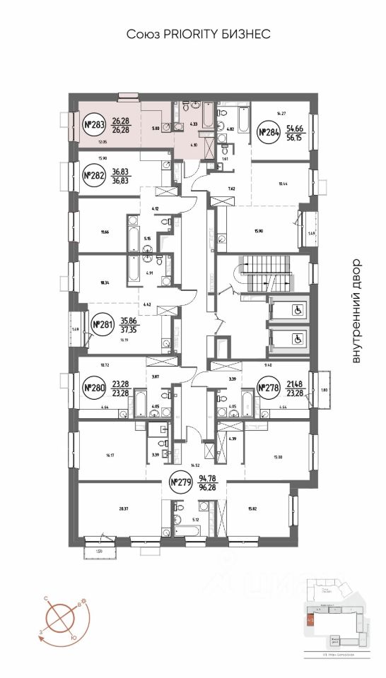 Продаётся студия в строящемся доме (Дом 4), срок сдачи: III-кв. 2029, общей площадью 26.28 кв.м., на 18 этаже. Мы начали с эталона - жилого комплекса Союз Priority, лучшего в России. А теперь представляем его логичное и яркое продолжение Союз Priority MAX.