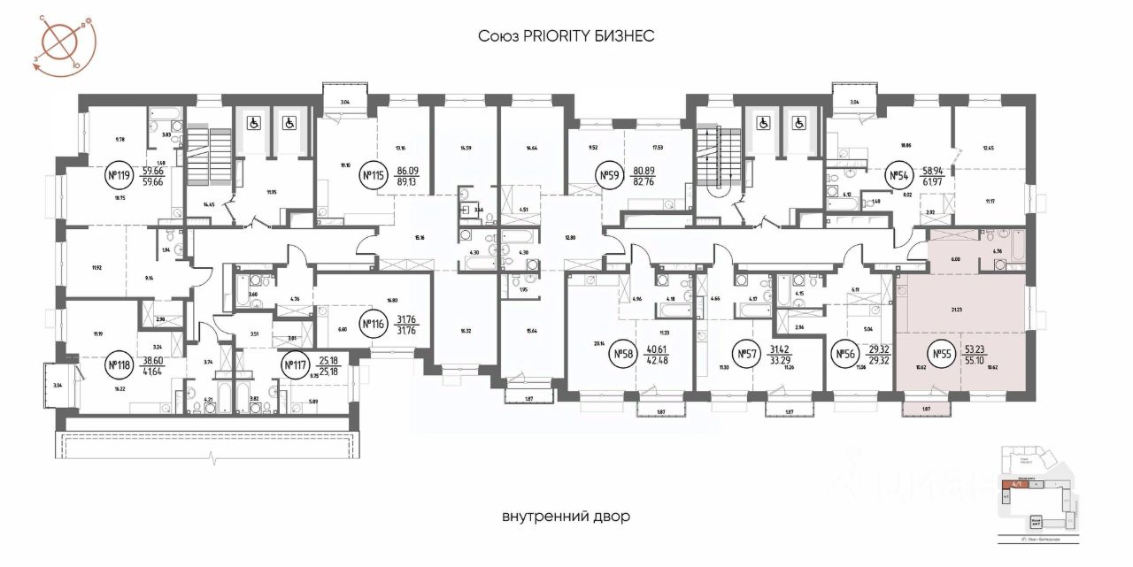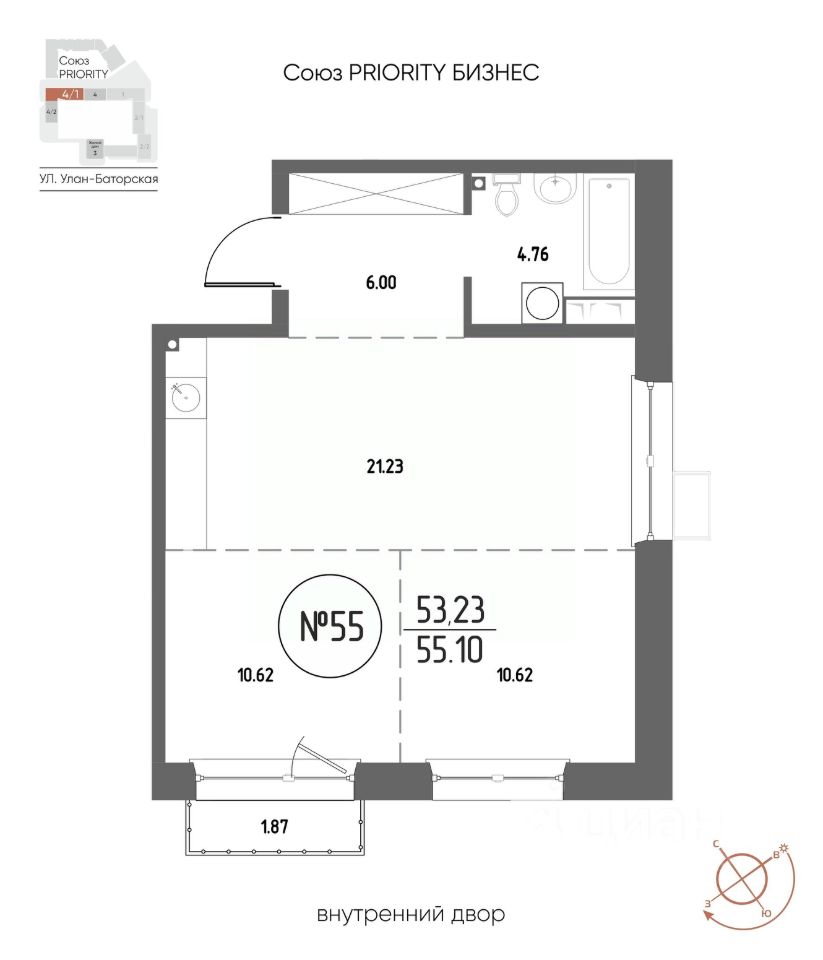 Продаётся 2-комнатная квартира в строящемся доме (Дом 4), срок сдачи: III-кв. 2029, общей площадью 55.1 кв.м., на 11 этаже. Мы начали с эталона - жилого комплекса Союз Priority, лучшего в России. А теперь представляем его логичное и яркое продолжение Союз Priority MAX.